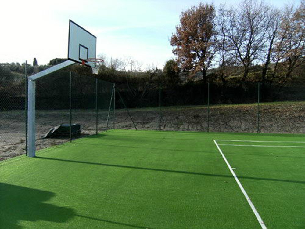 Gli sportivi possono divertirsi a giocare a tennis, a basket o a bocce nel campo in erba sintetica.
